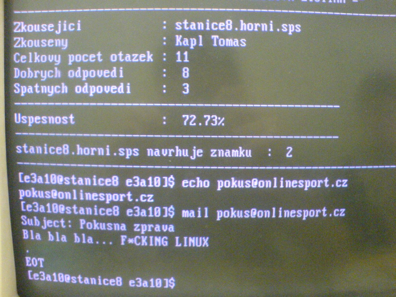 Pokud si chcete od Štěrbíka poslat mail, tak syntaxe jest: echo "text zprávy" | mail -s "předmět" emailovaadresa@hosting.tld < soubor